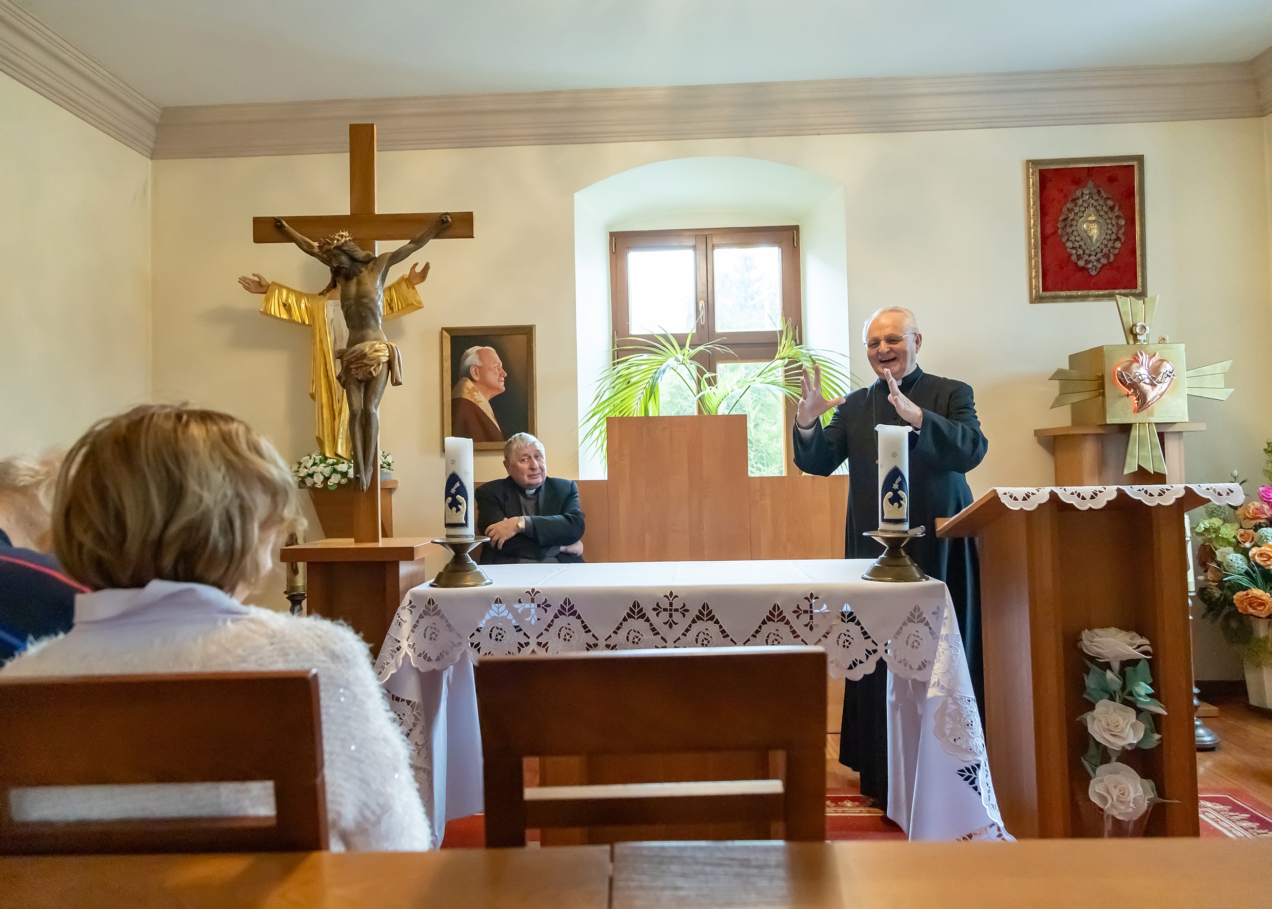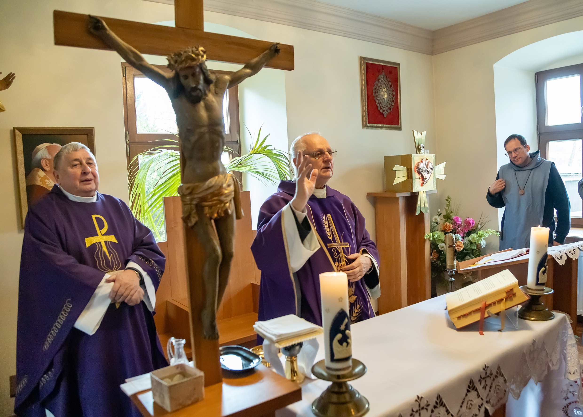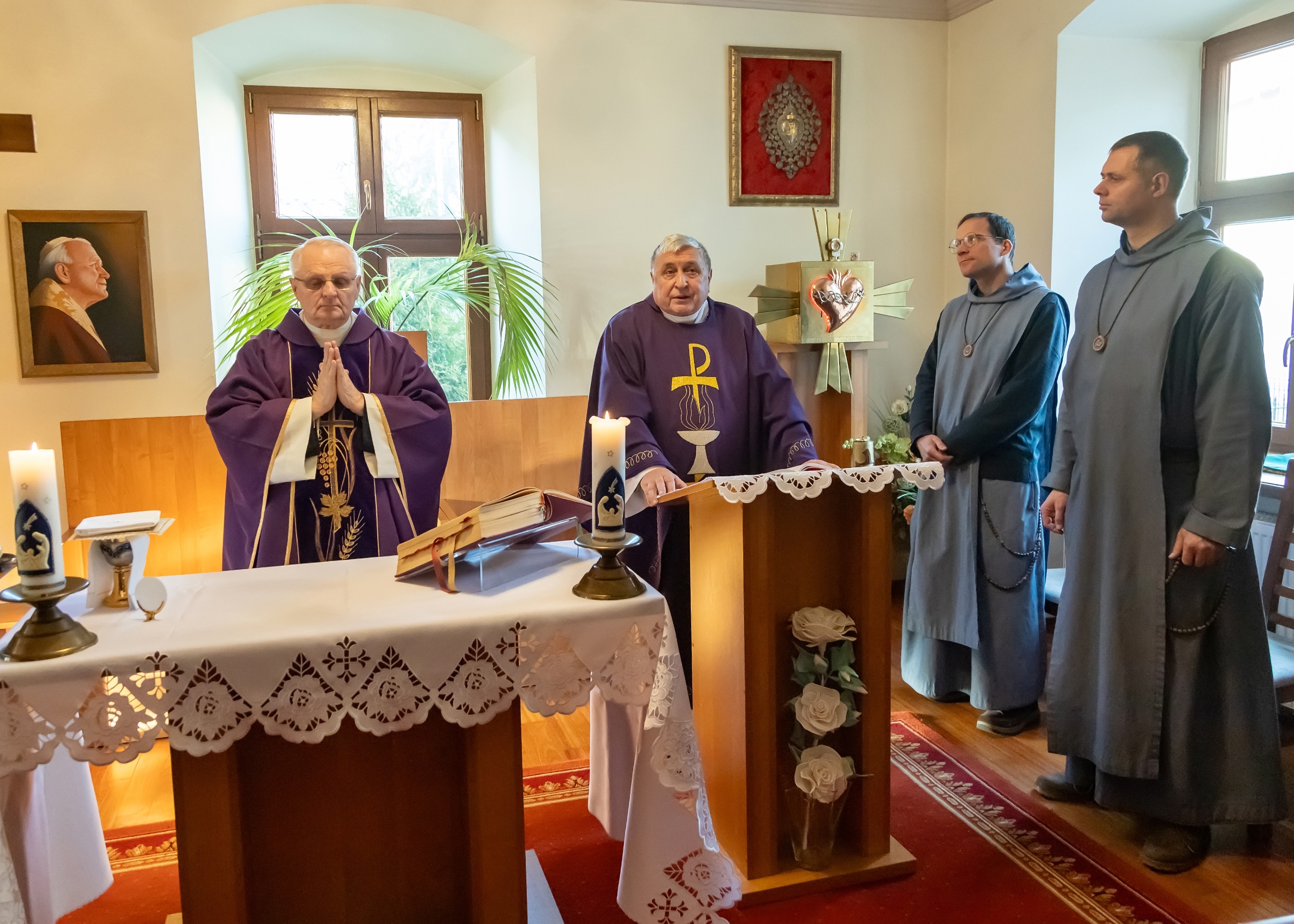 W dniach 13 i 14 grudnia w Ośrodku Rekolekcyjnym Akcji Katolickiej w Jeleśni tradycyjnie odbyły się adwentowe dni skupienia dla członków i sympatyków naszego stowarzyszenia. Rekolekcje, w których uczestniczyło łącznie około 100 osób, tym razem poprowadził Ksiądz prof. dr hab. Marian Duda – wykładowca UPJP2 w Krakowie i Wyższego Instytutu Teologicznego w Częstochowie. Księdzu rekolekcjoniście towarzyszyli dwaj francuscy Misjonarze Najświętszego Oblicza ze wspólnoty Mali Bracia Baranka z Małego klasztoru „Światłość Najświętszego Oblicza” z Choronia koło Poraja.